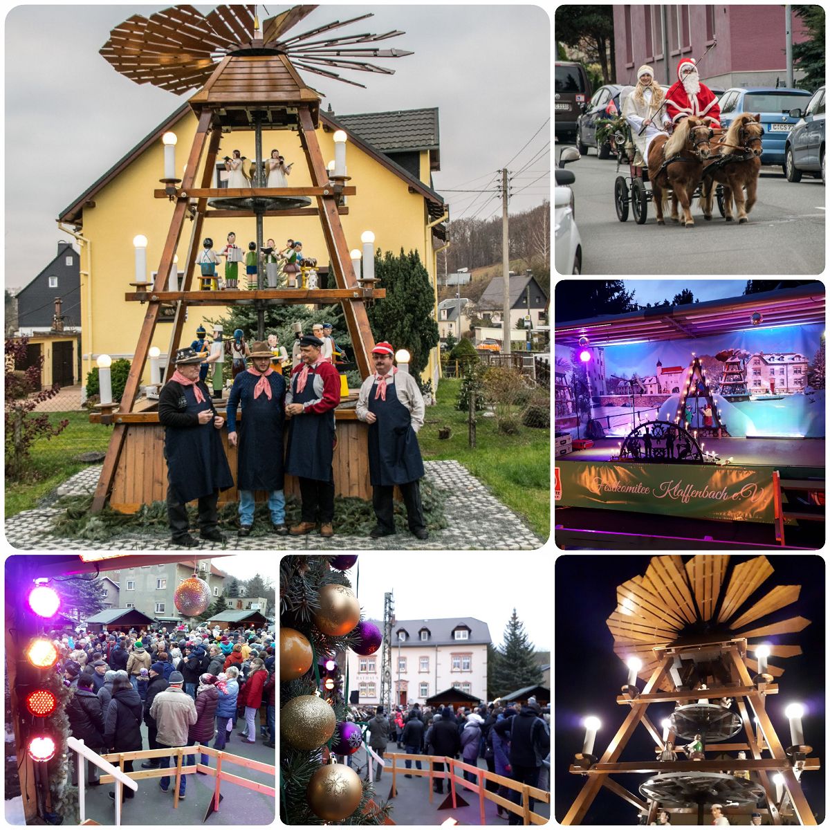 Am Samstag vor dem 1. Advent wird gegenüber dem Rathaus Klaffenbach wieder unsere Pyramide angeschoben. Dazu lädt das Festkomitee Klaffenbach recht herzlich ein. Für das leibliche Wohl ist gesorgt und für die Kleinen wird der Weihnachtsmann sicherlich auch vorbeischauen. Wir freuen uns auf viele Gäste, die mit uns zusammen die diesjährige Adventszeit einläuten.