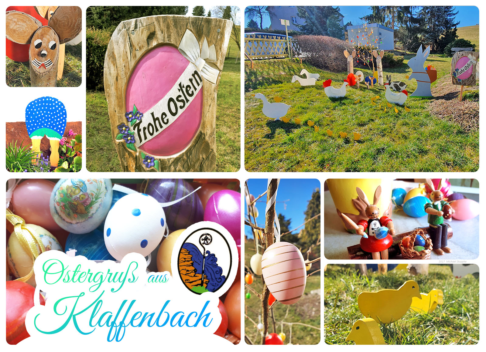 Wir wünschen allen Klaffenbachern ein ruhiges und besinnliches Osterwochenende mit besonderen Dank an unseren Gallin Johannes für die wieder einmal sehr schöne Dekoration am Rathaus neben der Pyramide.