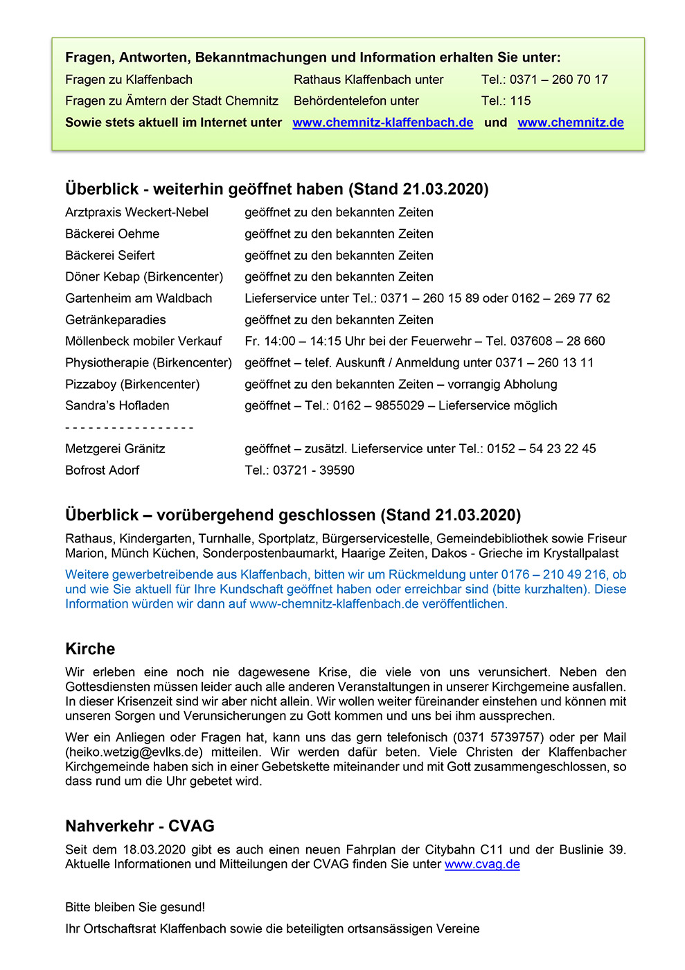 Dazu lädt das Festkomitee Klaffenbach e.V., mit kleinerem Programm aber in gewohnt stimmungsvollem Ambiente recht herzlich ein.