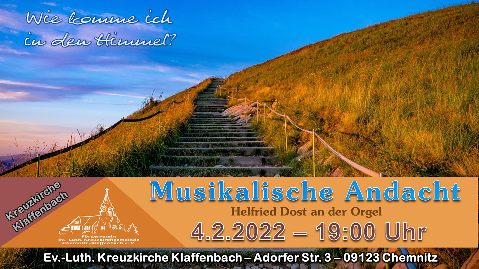 Konzert zum Buß- und Bettag mit Thomas Steinlein 20.11.2024 | 17:00 Uhr | Kreuzkirche Klaffenbach Weitere Infos unter: http://kirche-klaffenbach.blogspot.de/