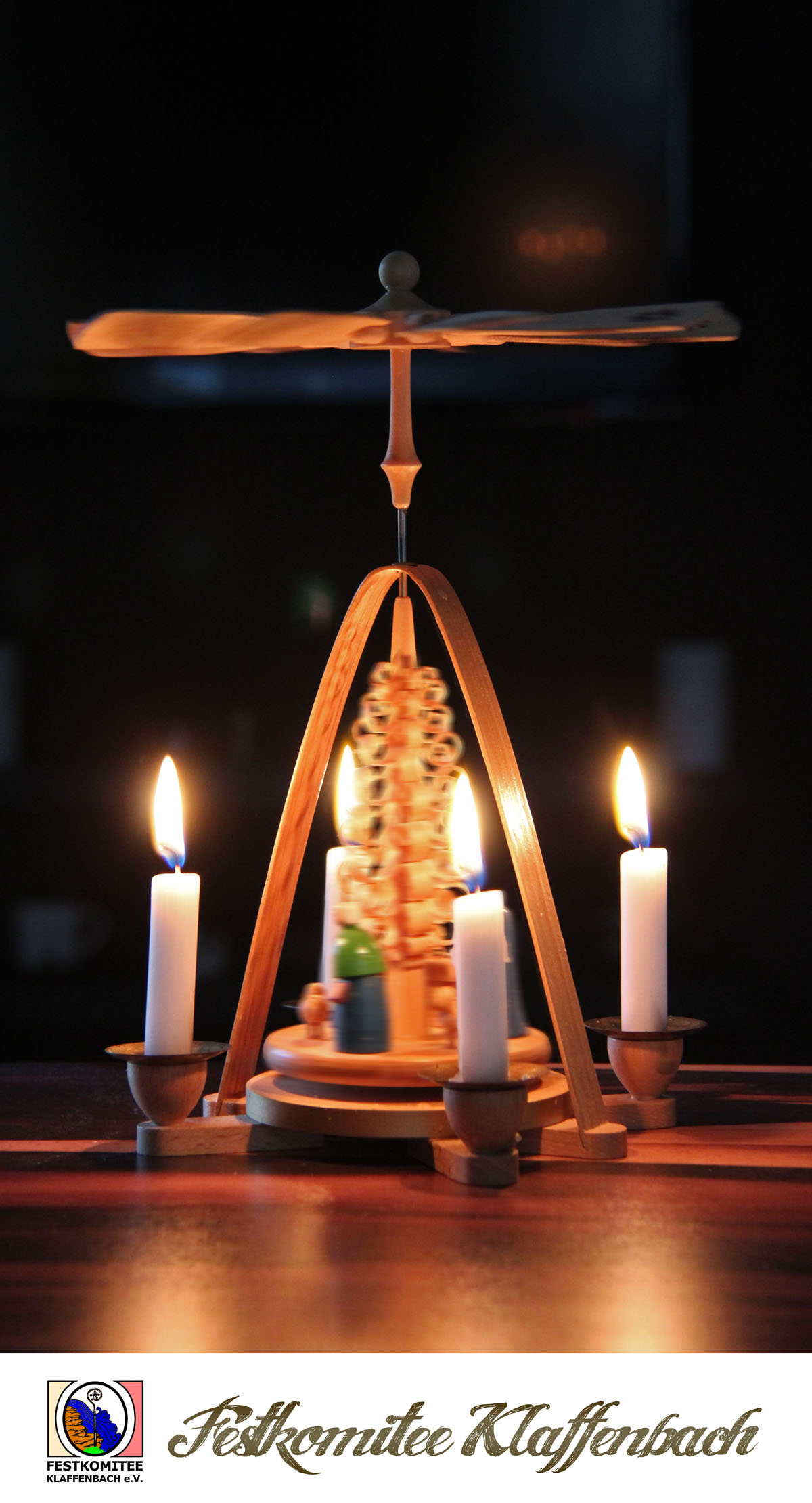 Am Samstag vor dem 1. Advent wird gegenüber dem Rathaus Klaffenbach wieder unsere Pyramide angeschoben. Dazu lädt das Festkomitee Klaffenbach recht herzlich ein. Für das leibliche Wohl ist gesorgt und für die Kleinen wird der Weihnachtsmann sicherlich auch vorbeischauen. Wir freuen uns auf viele Gäste, die mit uns zusammen die diesjährige Adventszeit einläuten.