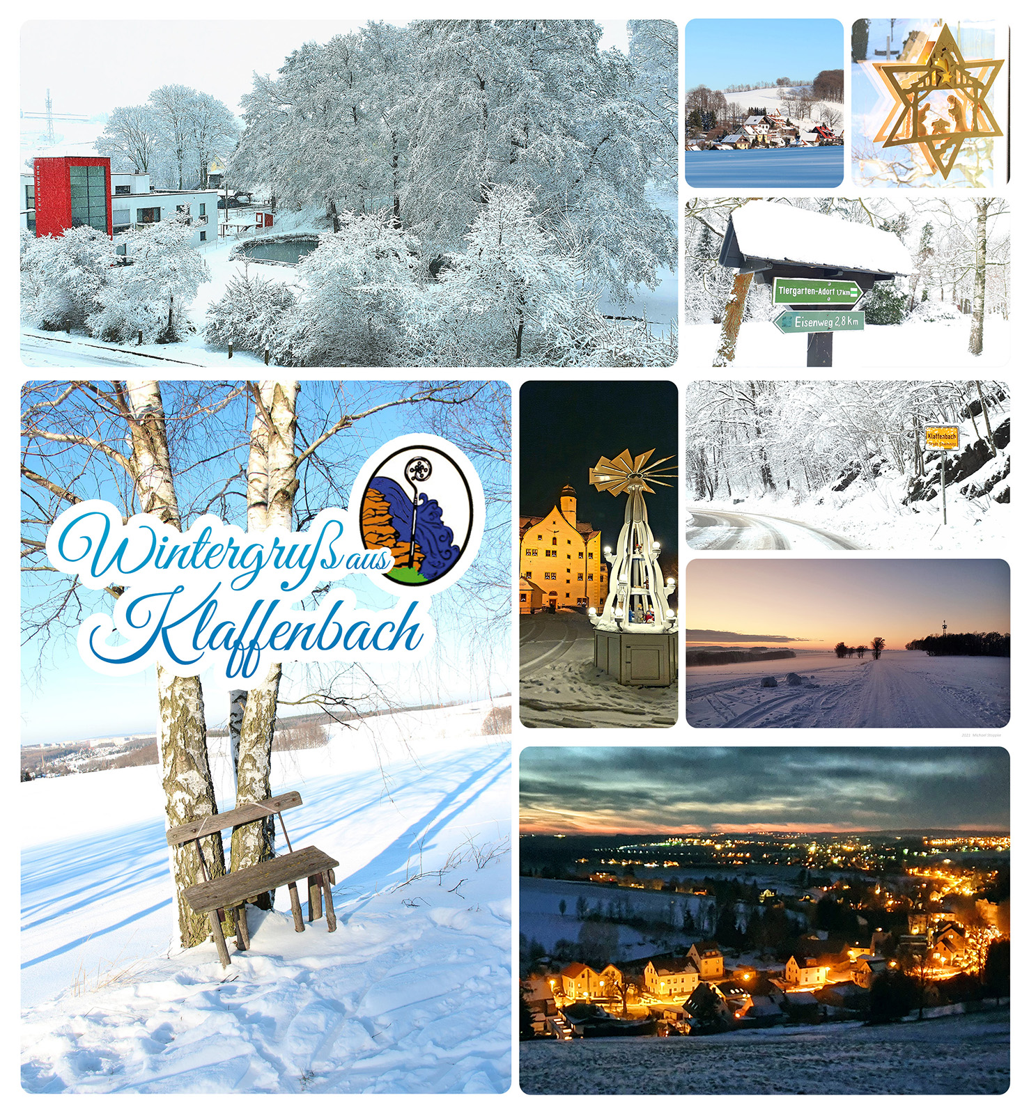 Mindestens 2 Wochen zu spät aber dennoch schön anzusehen - der Wintergruß aus Klaffenbach. Mittlerweile hat sich der Winter nach knapp 6 Wochen mit seiner ganzen Schneepracht schon wieder verzogen und die ersten Schneeglöckchen sprießen aus dem Boden. Nun schauen wir mal ob sich der Frühling bald bei uns blicken lässt.